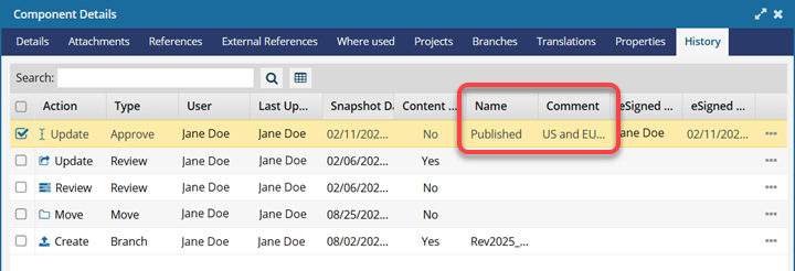 electronic signature is required, you can sign once for all selected referenced components. - If an electronic signature is not required, you see the approved