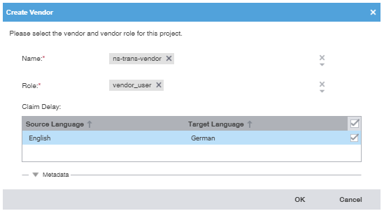 In the example above, your translation project only works with Source files in English (EN) that can be translated into German (DE).