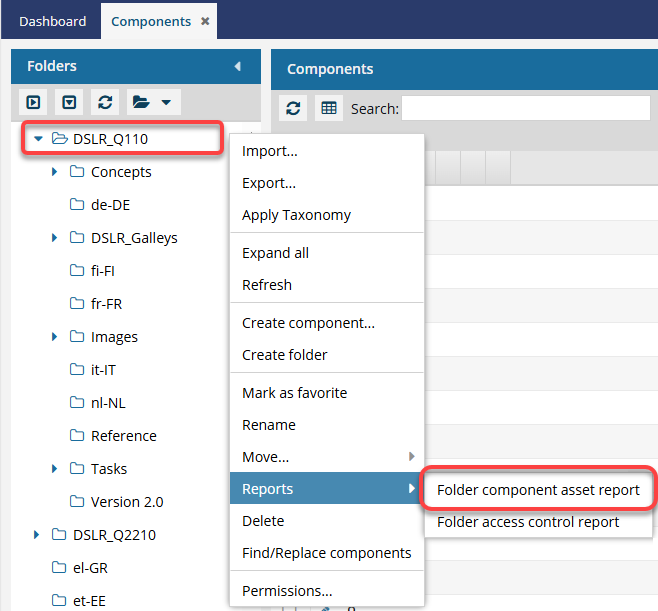 To create a component asset report for a folder:
