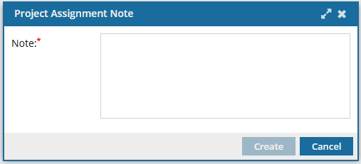 - When you click Create, the Project Assignment Note screen opens.