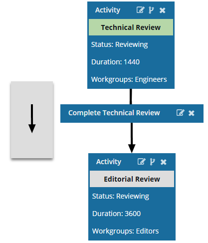 The workflow editor uses visual elements to help you create the workflow.