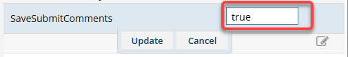 - If the SaveSubmitComments feature is ON (true), the user is prompted to enter a comment.