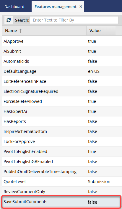 - If the SaveSubmitComments feature is OFF (false), the user does NOT see the prompt to enter a comment. The changes to the component are saved and the Oxygen editor is closed.