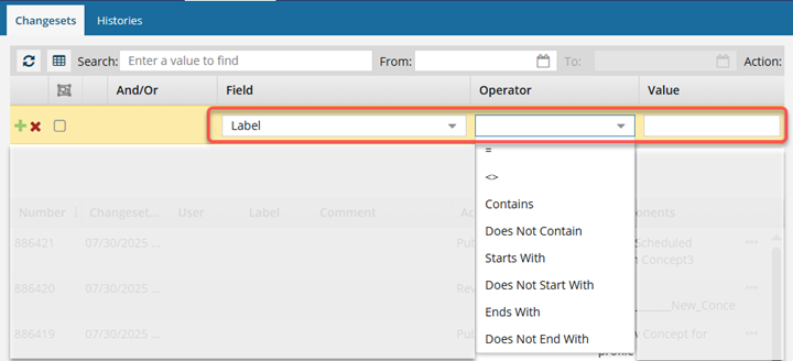 - For steps to find a changeset using specific criteria, refer to the following topics: