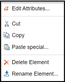 The last element listed in the breadcrumb is the element at the current cursor position. In the figure above the last element is Paragraph. The last element is also highlighted in light blue for easier identification. You can right-click an element from the breadcrumb to access the following menu: