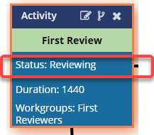 Inspire provides you with a template for the process of getting reviews and developing content. If you want a workflow that contains different activities, you can update the template. Each Activity has a Status that tells you what is happening to the components in that step of the workflow.