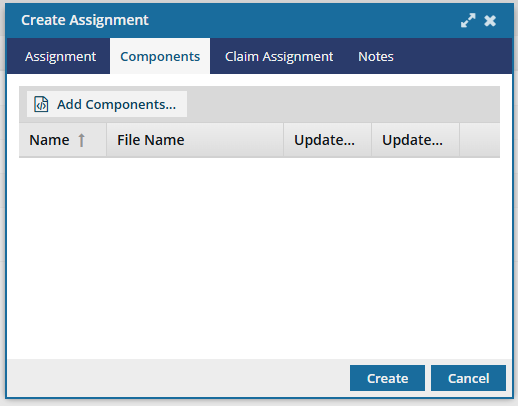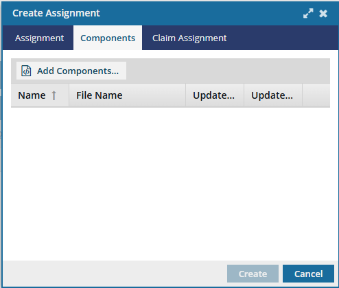 When you create an assignment, you can include one or more components to be worked on using the Components tab.