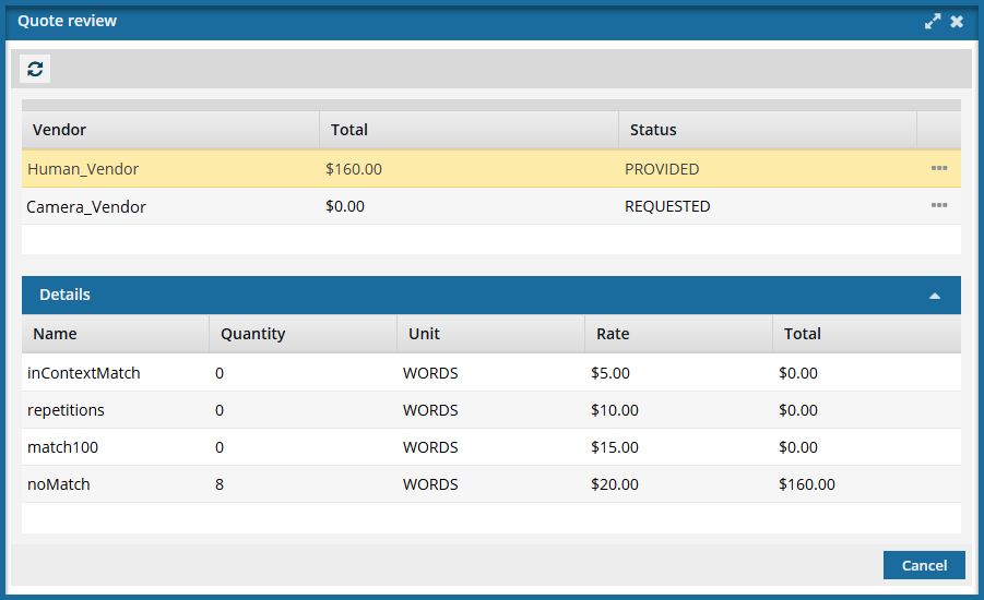 Queued jobs can be sent out to get a quote on the cost of translation work if an administrator has configured it.