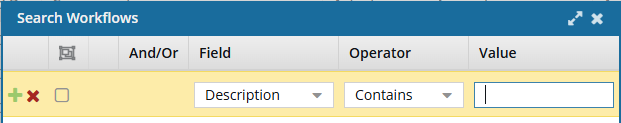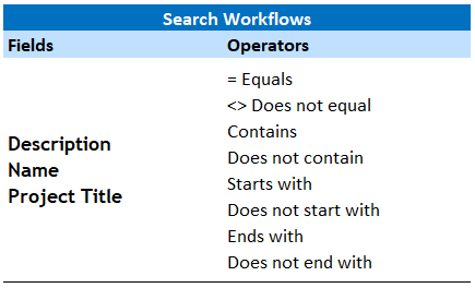 - The following filters are not included on the advanced Search Workflows screen, so make sure to select them if you need to use them before you open