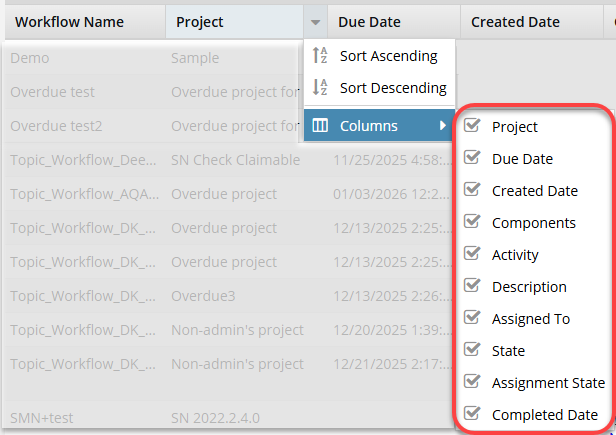 - Creation Date. This is a property of a project workflow. In the grid, these values are listed in the Created Date column.