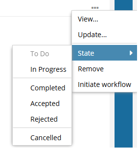 - You can also revert to an earlier stage. For example, you can change an assignment with a State of Completed back to In Progress if you need to do more work.
