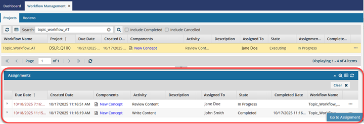 Select the project or workflow in the top list to populate the Assignments panel with details.