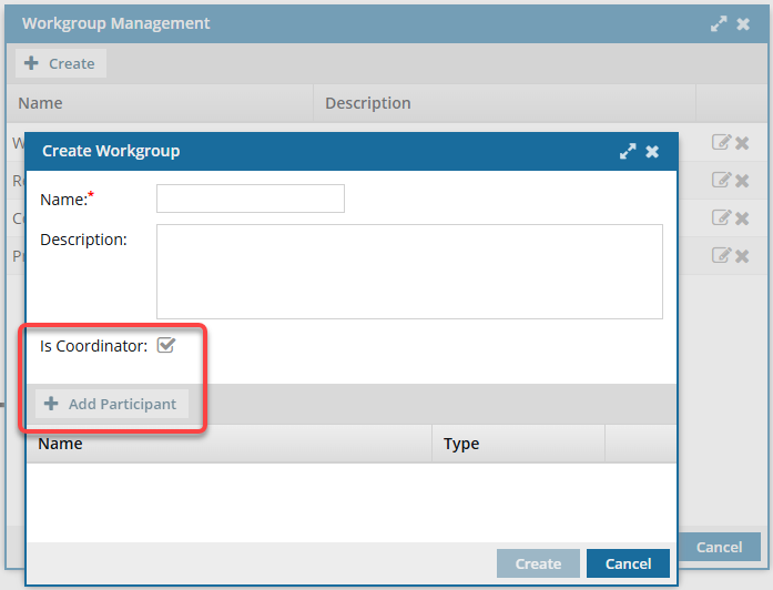 Inspire provides you with workgroups that you can use to collect participants that are needed to complete task activities. If you have a skill set specific to your organization's workflows, you can create a new workgroup.
