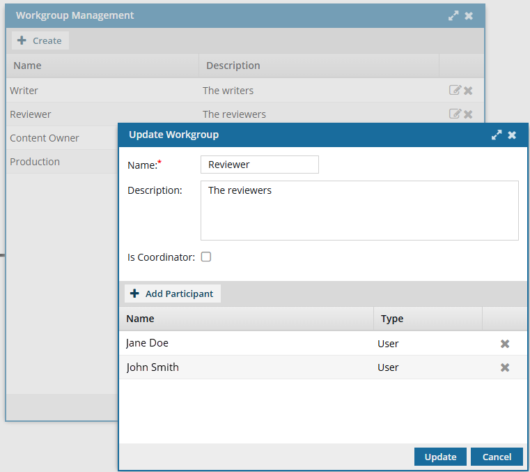If you want to learn more about the default Workgroups provided by Inspire, read Manage template workgroups.