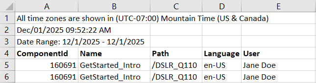 • If the map or component hasn't been published, a report is still generated but it only contains the report dates and column headings with empty rows.
