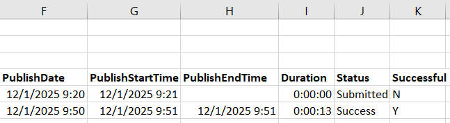 If this number is 00:00:00 then the publishing job did not complete successfully.