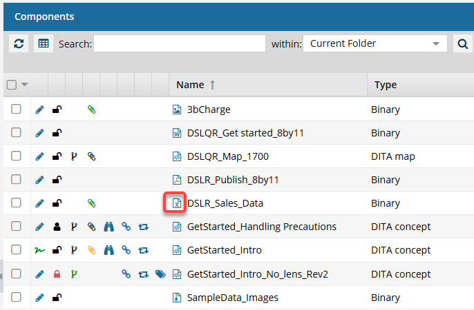 XLSX File Type icon in the Components browser and other screens that list components.![]()