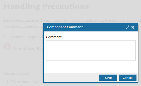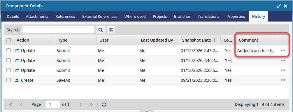 The comment is optional. To leave it blank and save your changes, click Save.You see comments left by users in the Component Details screen, on the History tab.