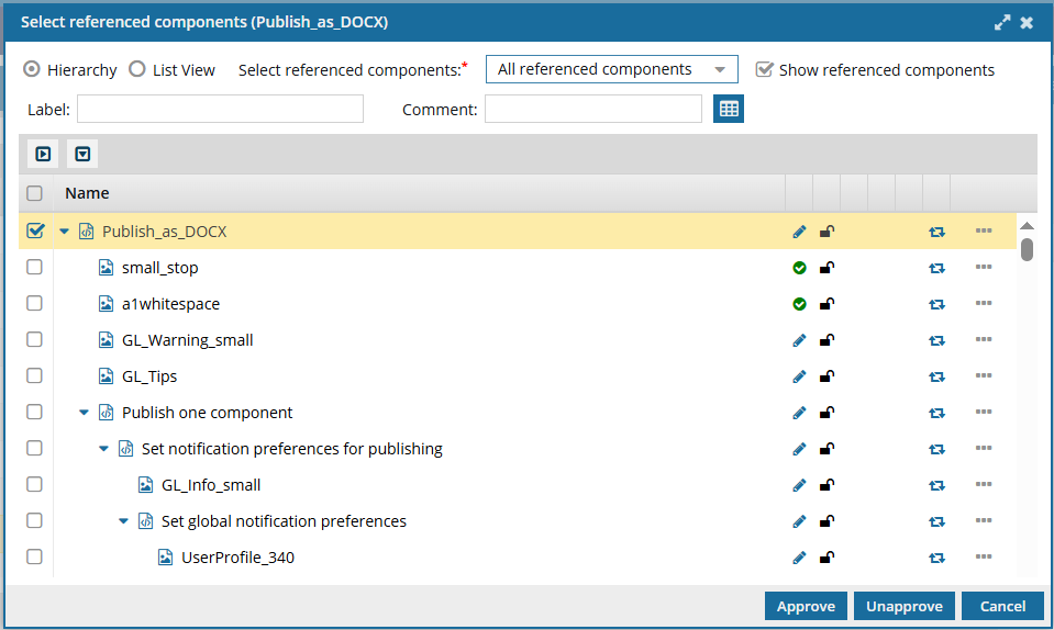 - If you want to approve a referenced component individually, you can follow the steps in Approve a component in the browser.