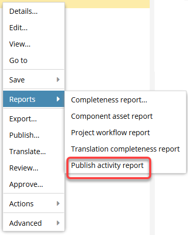 - You can also create a Publish Activity Report in the Components browser.