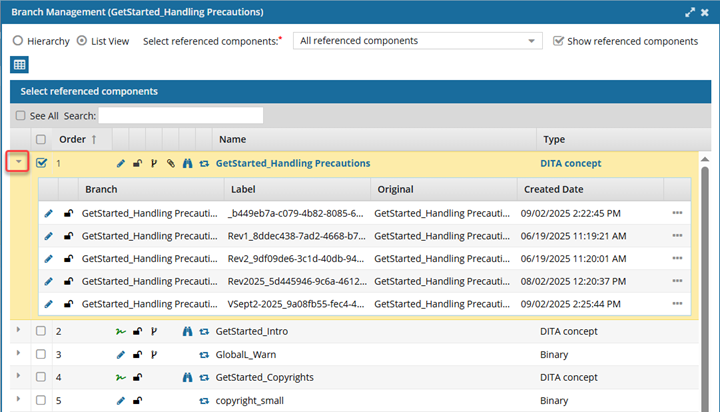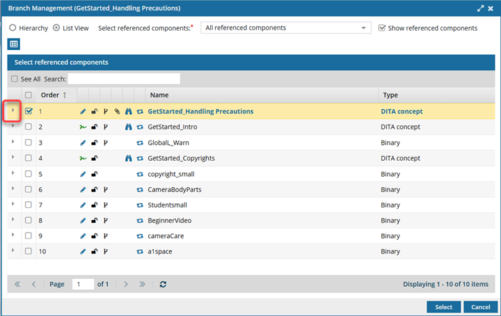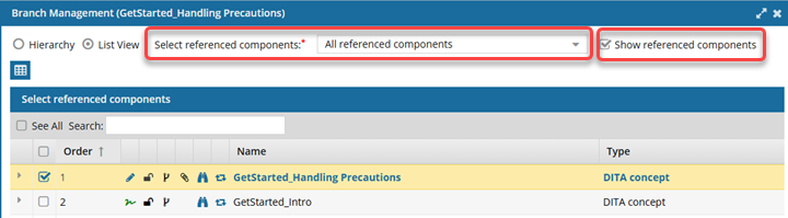 When you branch a component, you can choose if the branch maintains all, some, or no content referenced in the source component. In the Branch Management tool, you can select a component that is included in a branch and see what other branches it's used in. To create a report about this branched component's relationship in another branch, you can use the Branch Management tool.