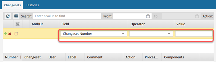 In the Field list, select Changeset Number.