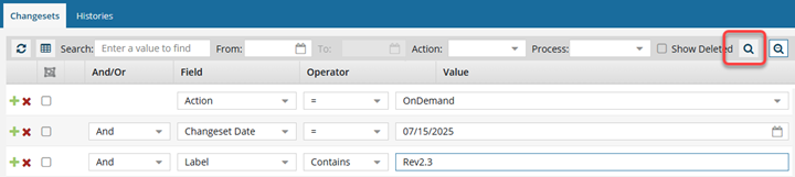 - For steps to find a changeset using specific criteria, refer to the following topics: