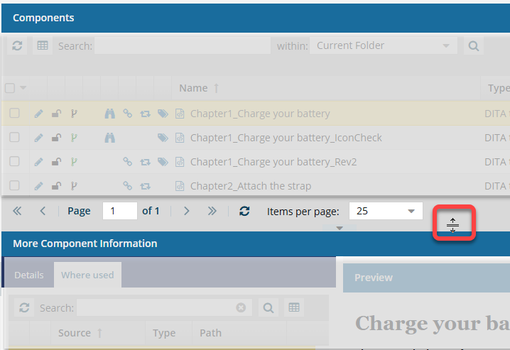 - To show more of the preview area, you can increase the height of the More Component Information panel.