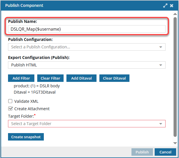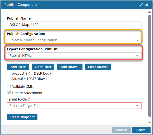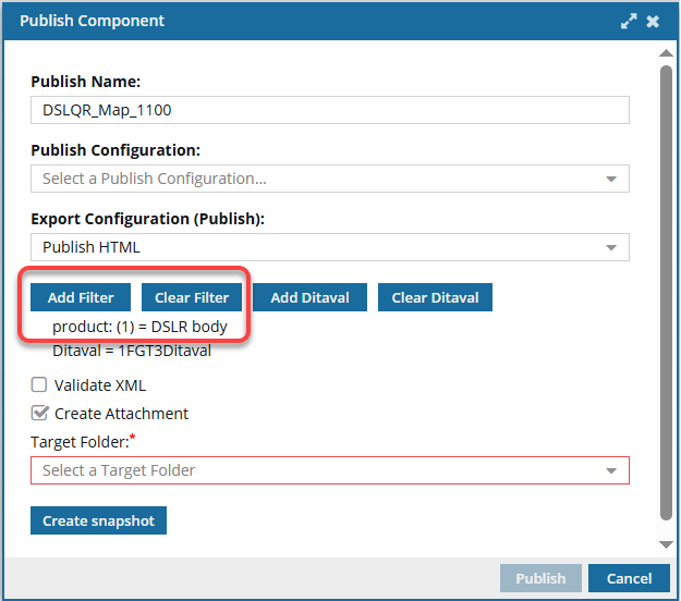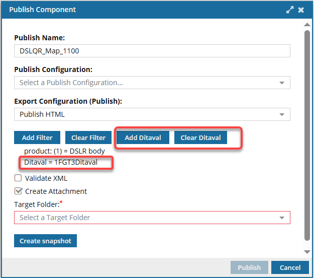 - Only when you're publishing a map can you optionally select a DitaVal file.