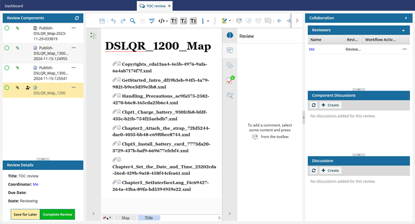 In the Review Components pane, to open the map component in the review editor, click a component title.