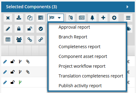 - In the Components browser, you can also create reports from the Selected Components panel:
