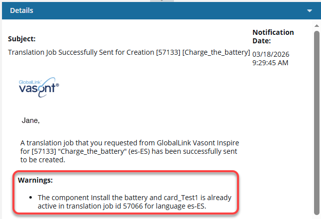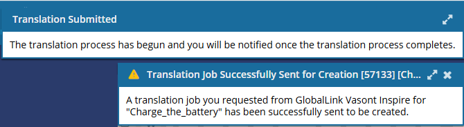 - Open the Notifications module and look for the notification telling you if your translation job was created.