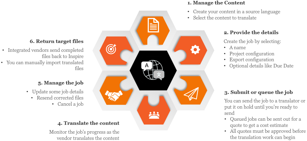 As the translation work is being done, issues may arise that you need to manage. Inspire lets you update translation jobs in the following ways: