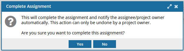 - If you select Yes, Inspire notifies the assignee and project owner automatically.