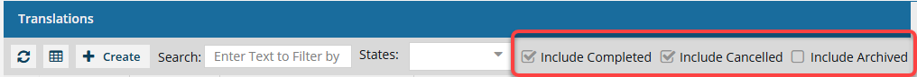 You must have permission to be a translation coordinator or an administrator before you can see translation jobs on the Translations Management tab. To see all translation jobs in your organization, you can choose to display archived, completed, and cancelled jobs.