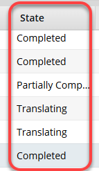You can see how a translation job is progressing by looking in this column.