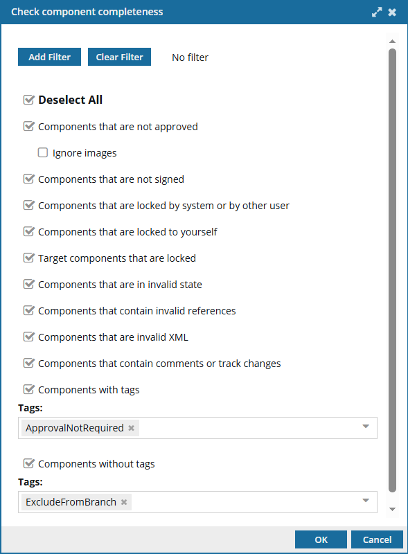 5. Optionally, on the Check component completeness screen, to filter on conditional text: