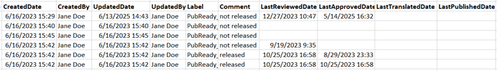 - LastTranslatedDate. The most recent date that the content in the file was included in a translation job and the translated file was returned to Inspire.