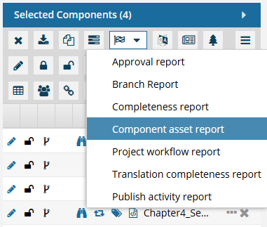 You can select a component and create a report to see all of the component's references, including links to other topics, content references to elements in other topics, file and web links, and inserted images. If the component is a map, you can also see references to other maps.