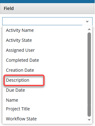 - You can search for words or phrases used in a workflow's Description in Field: