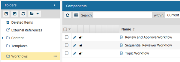 - If you want the workflow to advance and have all source components approved without referenced components and user intervention, you can use the Inspire Approve Action (InspireApprove) instead. Follow the steps in: Add an Inspire Approve Action to a topic workflow template.