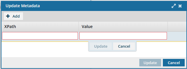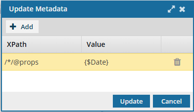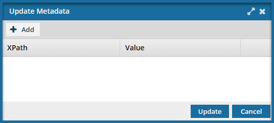 In the XPath and Value fields, enter the expression you need to update your metadata.