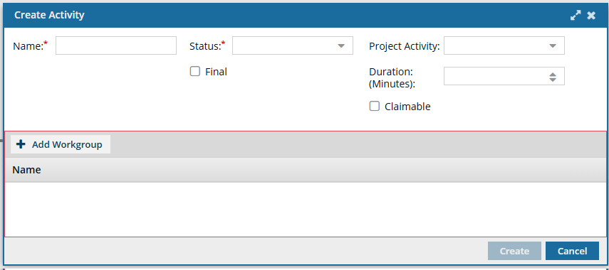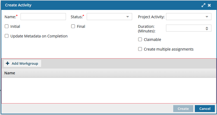 To save changes to the Activity, click Create.