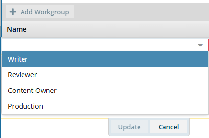 Select an option such as Writer, Reviewer, or Content Owner, or Production.