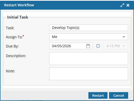 On the Restart Workflow screen: