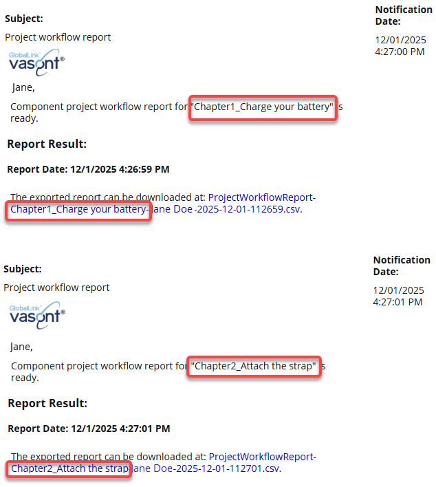 the Reports menu, and then select Project workflow report... You see a separate notification for each component you select.
