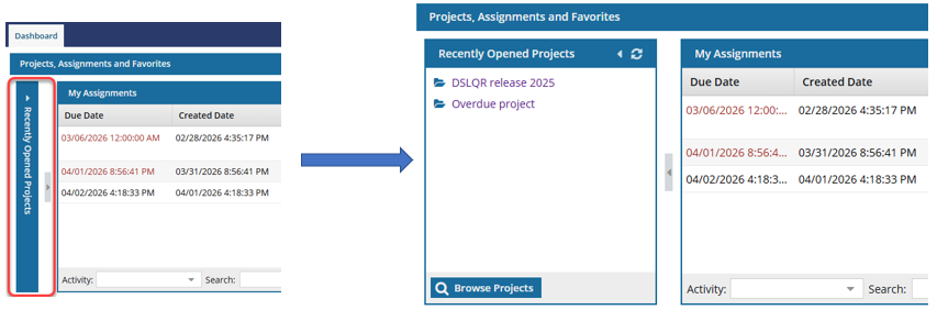 - Recently Opened Projects