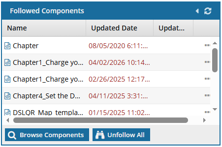 Followed Components lists the files you want to get notifications for when another user deletes or updates it.