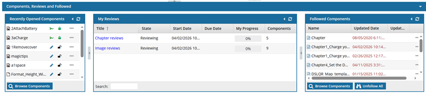 Components, Reviews, and Followed