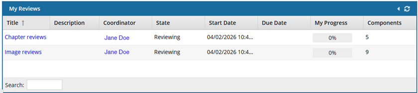 My Reviews gives you quick access to the reviews where you are a coordinator or work has been assigned to you.